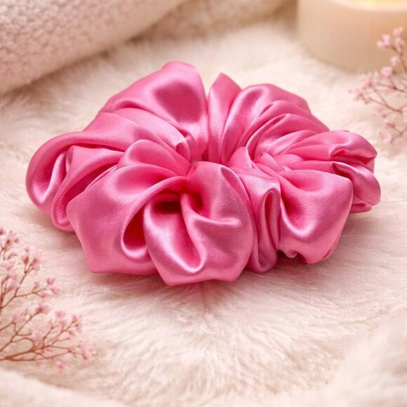 Wrap your hair in cozy elegance. This oversized pink satin scrunchie is handmade with love from smooth, high-shine satin that feels gentle on your hair while making a bold, feminine statement. Soft, fluffy, and luxurious, it's perfect for everyday wear, cozy nights in, or adding a pop of color to your outfit,